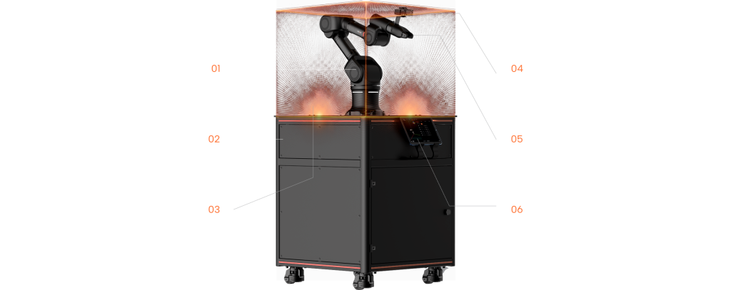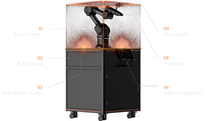Robot, logiciel, vision et IA conçus en France par un fabricant unique, garantissant traçabilité des composants, maintenance simplifiée et sécurité des données.